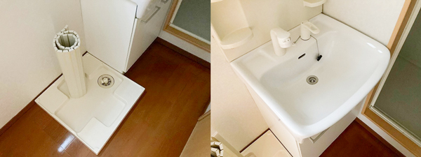 洗面台の隣には、洗濯機置き場になっています。