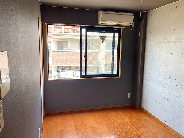 コンクリート打ちっ放し壁とブラック壁のツートーンウォールな内装。