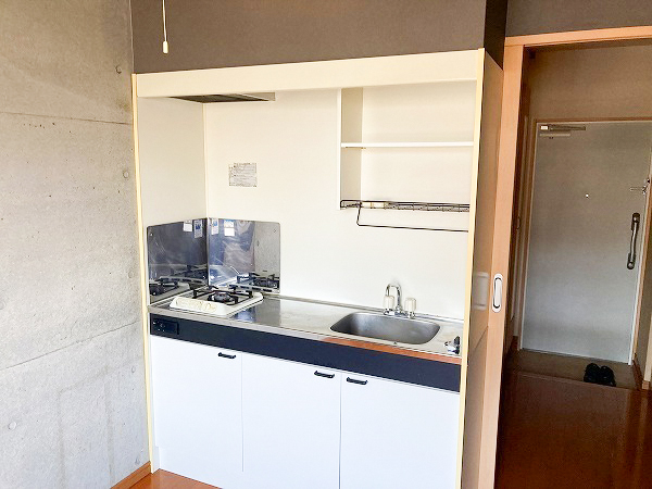 キッチンは、ガスコンロの気持ちコンパクトな印象。