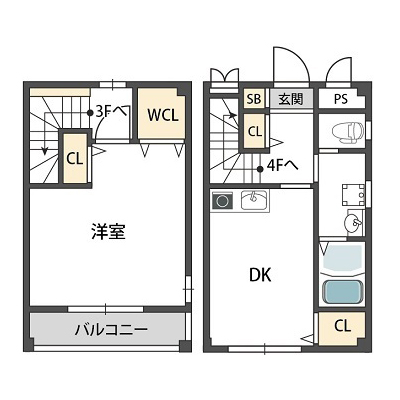 メゾネットタイプのお部屋なので、