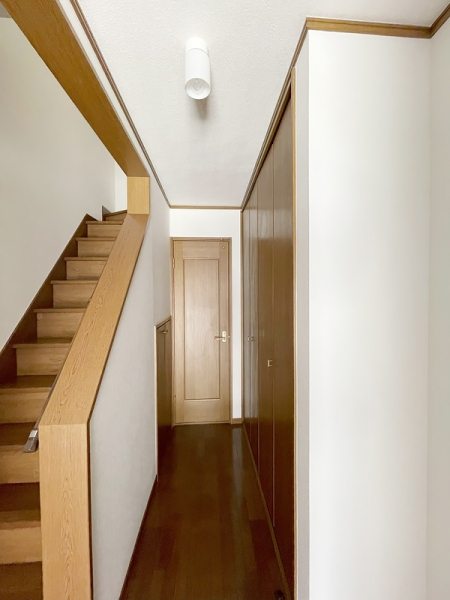 玄関からはすぐ階段があり、1Fは水回り。