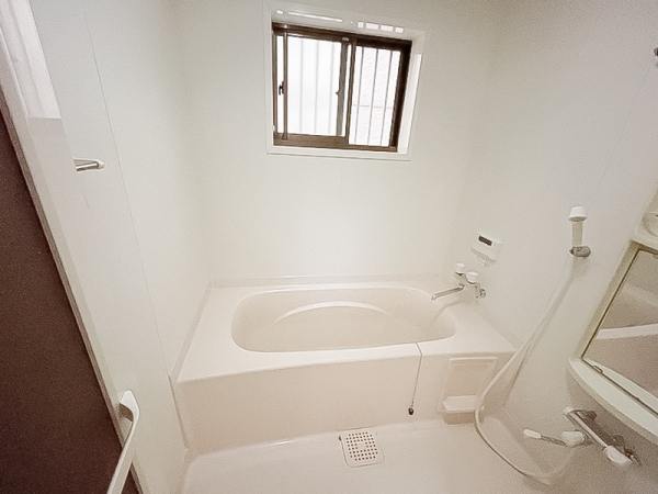 鏡や小物置き場も付いており、追い焚き機能付き。