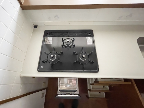 グリル付き3口ガスのビルドインコンロ付きで