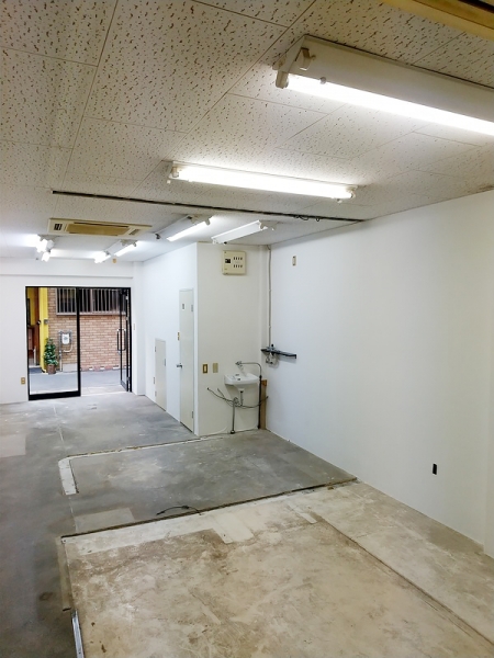 コンクリ床で奥行きのあるスペースとなっています。