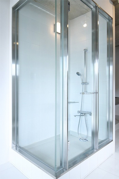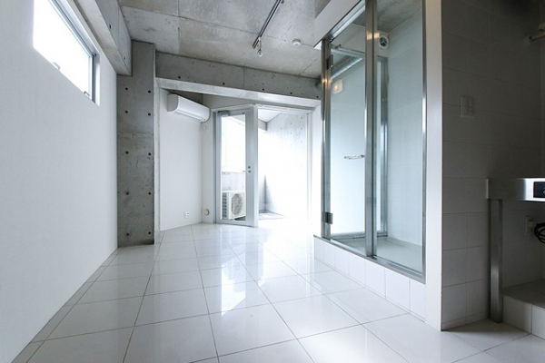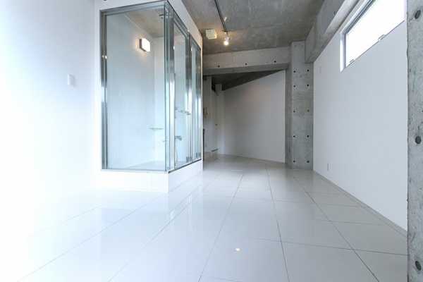 コンクリの無骨さやステンレスキッチン、ガラス張りシャワールームなどお洒落空間です。