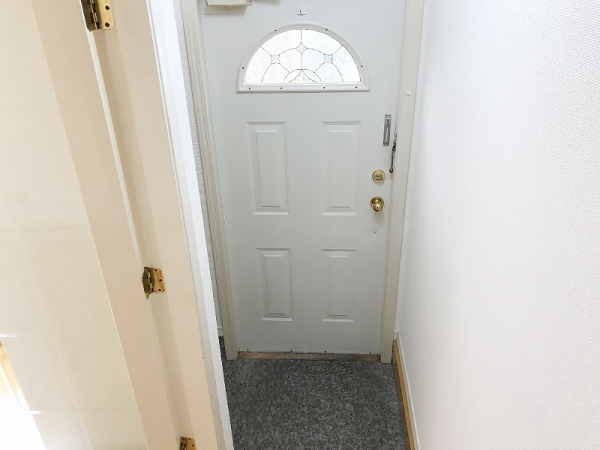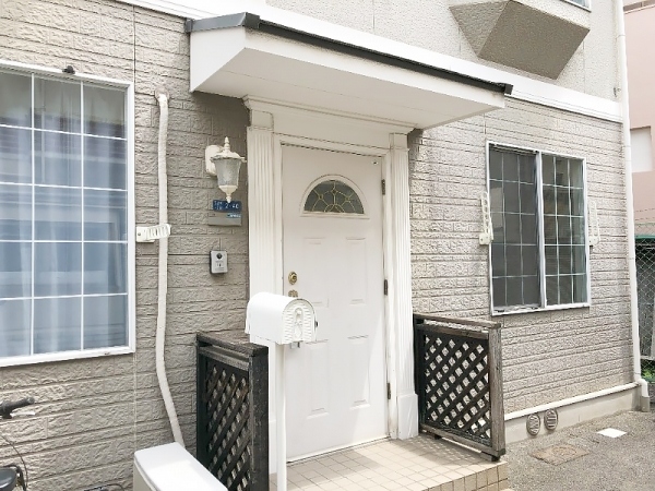 ベージュのスレート壁にホワイト扉がかわいい雰囲気です。