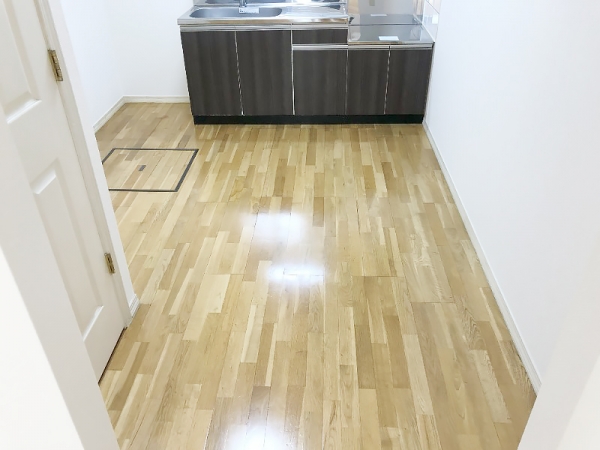 玄関の横にある扉から入るとリビングダイニング8帖。