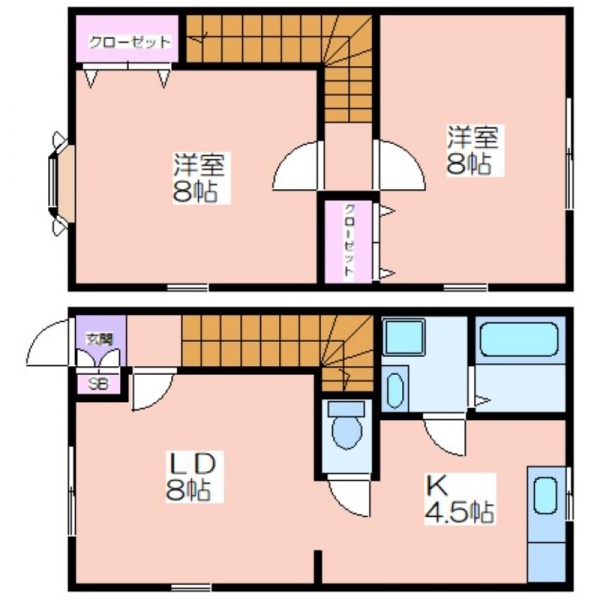 | テラスハウス、メゾネット、角部屋、敷金なし、二人入居可、保証人要 | |