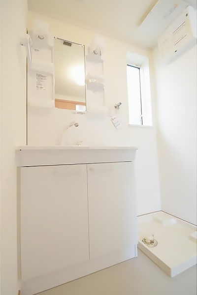 洗面脱衣所には室内洗濯機置場が有り窓付き。