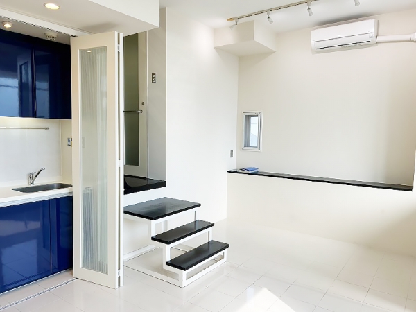 ワンルームながらもスキップフロアで演出された