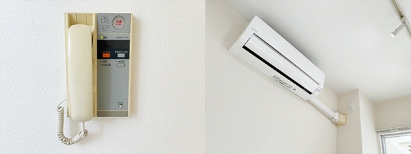 お部屋にはインターフォンとエアコンを完備。