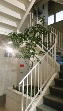 階段脇にはアクセントとして植栽も植えられています。