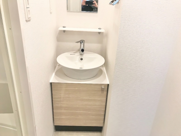 鏡下には小物収納、下にも開戸の収納が付いており
