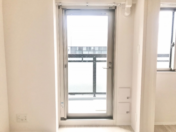 こちらがバルコニーへ出られる窓扉。