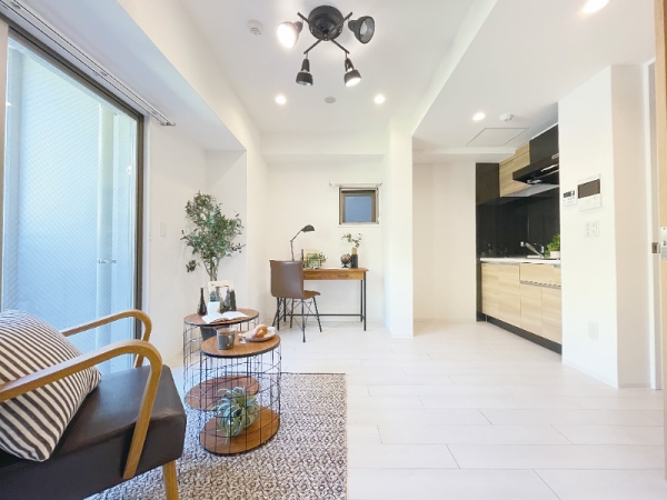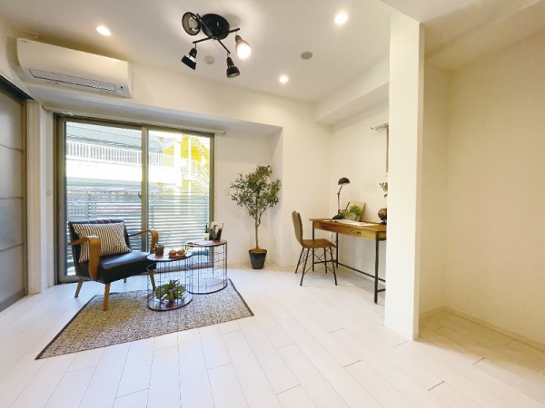 ホワイトベースで奥行きもありソファセットを置いても余裕の広さ。