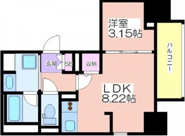 8.22帖のLDKと3.15帖の洋室+水回りという間取り。