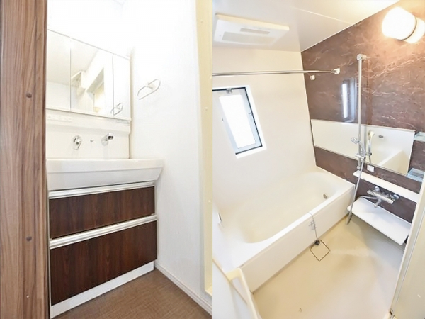 洗面台はシャンプードレッサー仕様でワイドタイプ。