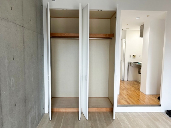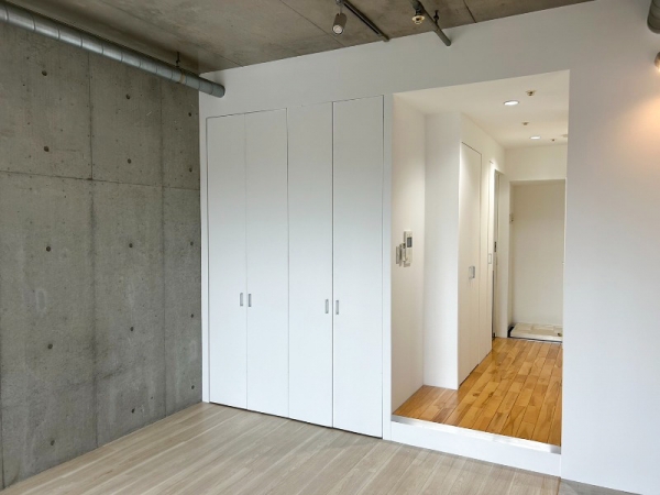 コンクリ打ちっ放し×ホワイト木目のデザイナーズ1Kです。