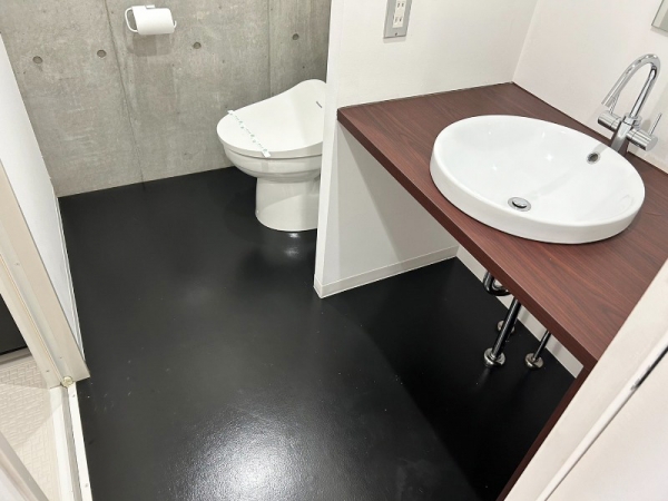 お部屋同様、コンクリ打ちっ放しなお洒落内装です。