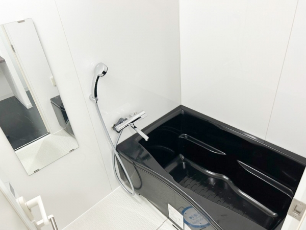ブラックカラーな浴槽がポイントのデザインになっています。