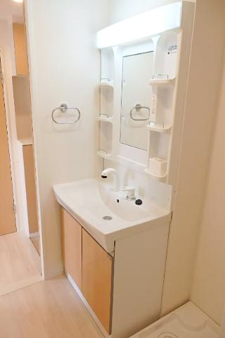 洗面台はシャワー付きで、使い勝手も良さそうな設備です。