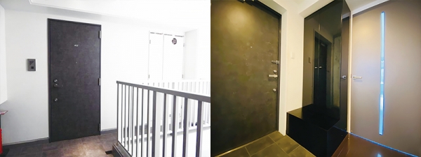 玄関扉は重厚で高級感のあるマットブラックな雰囲気で