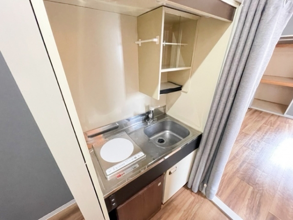 1口コンロとコンパクトなキッチンです。