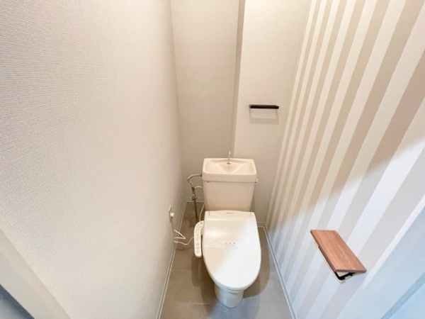 ストライプなアクセントクロスが可愛い内装になっています。