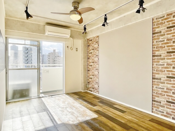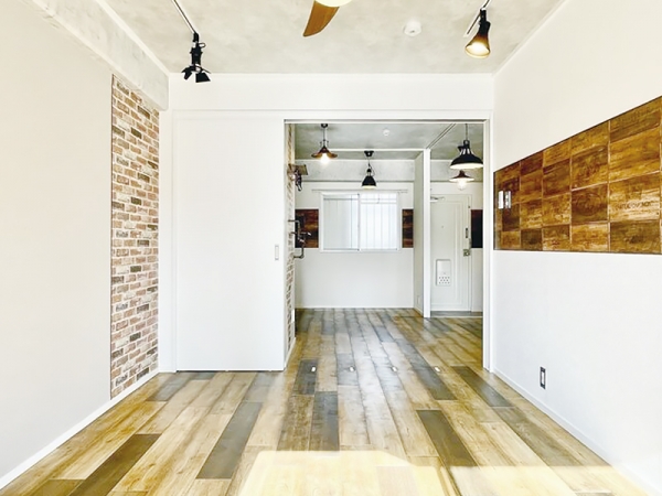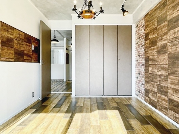 奥の洋室は6帖。ヴィンテージレンガの壁ですが