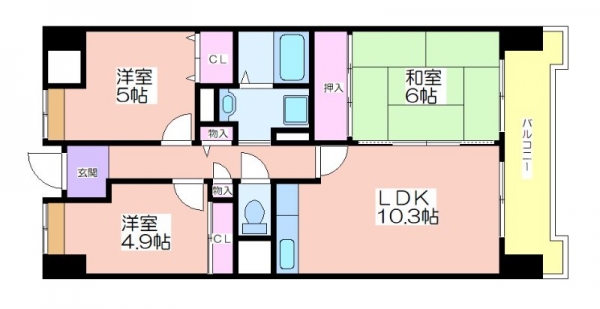 3LDK 専有面積:64.88 ㎡