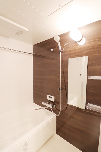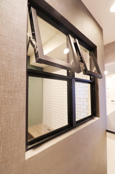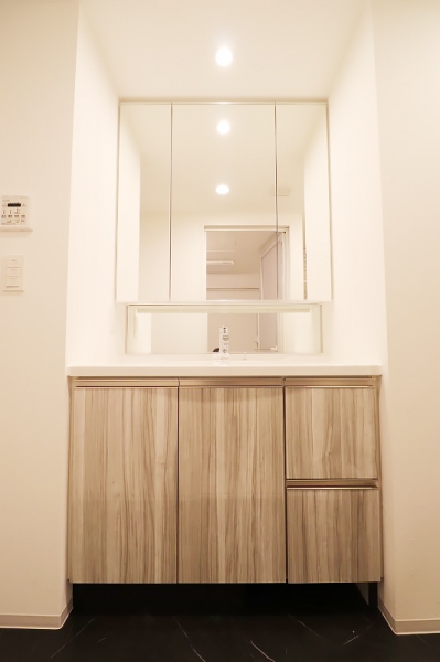 三面鏡付きのワイドな洗面台がカッコいいです。