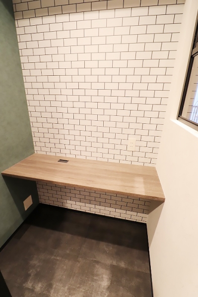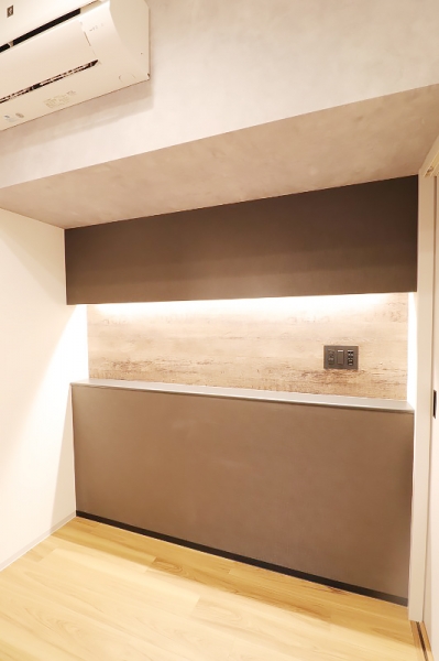 奥にシェルフが置いてありちょっとしたお部屋の様に