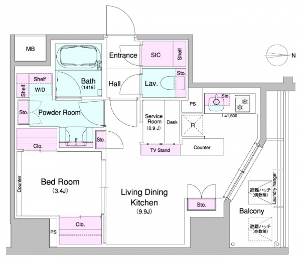 9.9帖のLDKと3.4帖の洋室に0.9帖サービスルーム