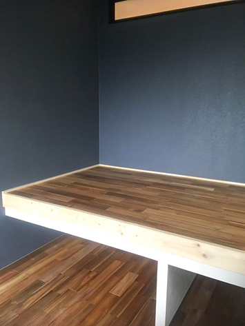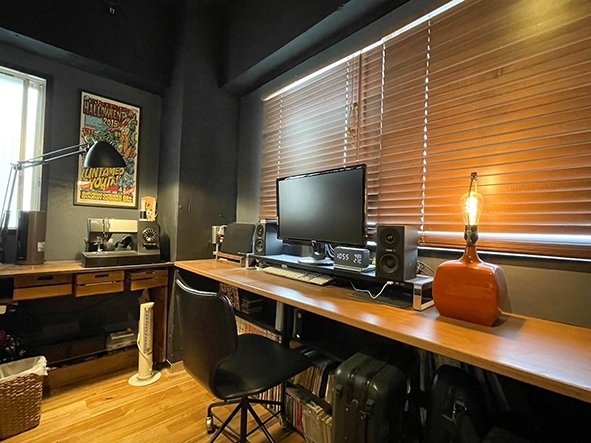 木目デザインに合わせて、ウッド調な机を選ぶと内装との相性も◎