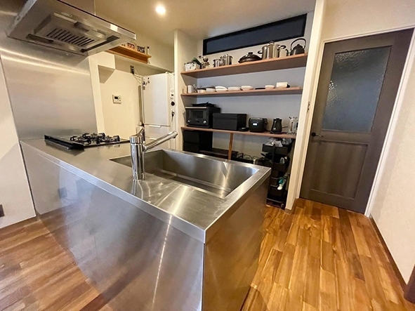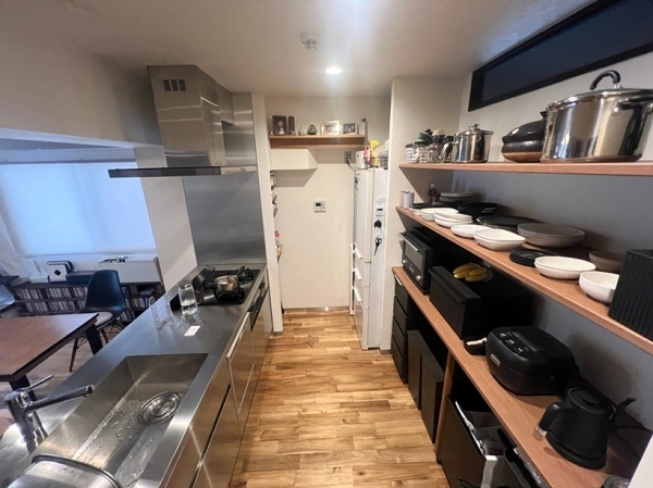 手前側は、炊飯器などのキッチン家電や食器置き場として、
