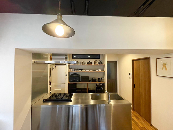 照明は、剥き出しな吊りタイプのお洒落デザイン!