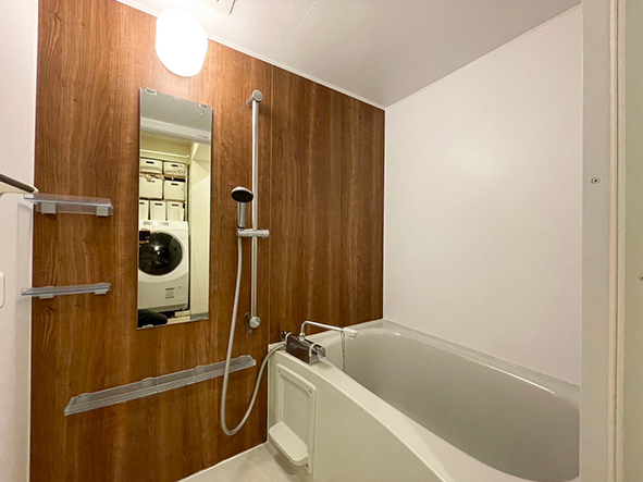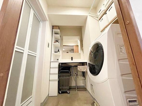 写真の奥。左側には、小さめですが棚が付いているのも◎