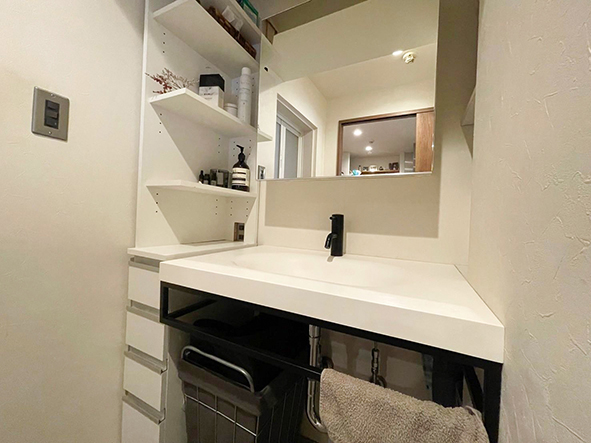 洗面台は、sanwacompany社製のお洒落デザインです。