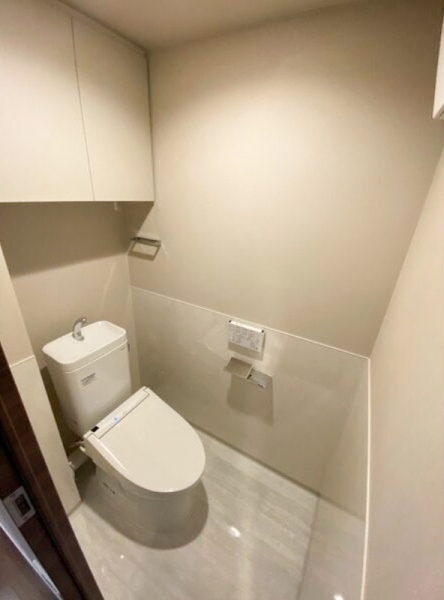 お手洗いは、上下で色が分かれているツートーンな内装です。