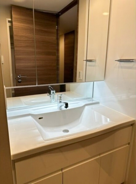 大きな鏡と充実した収納が嬉しい設備になっています。