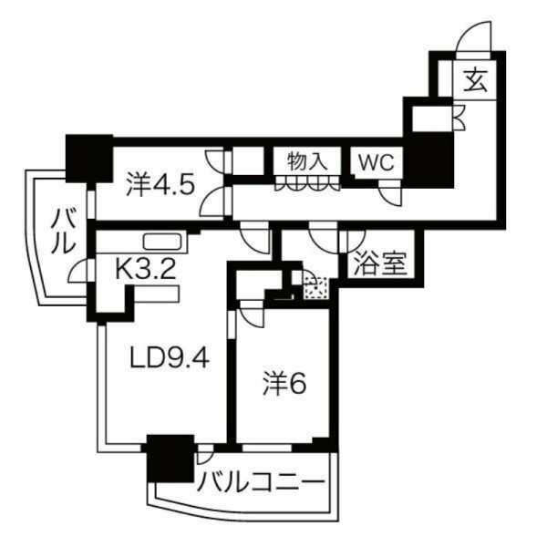 眺望を楽しむ、分譲タイプの角部屋2LDKです。