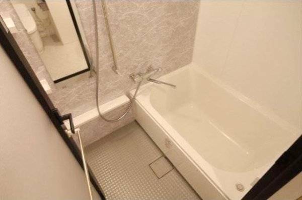 ホワイトな大理石調の高級感も感じるお風呂です。