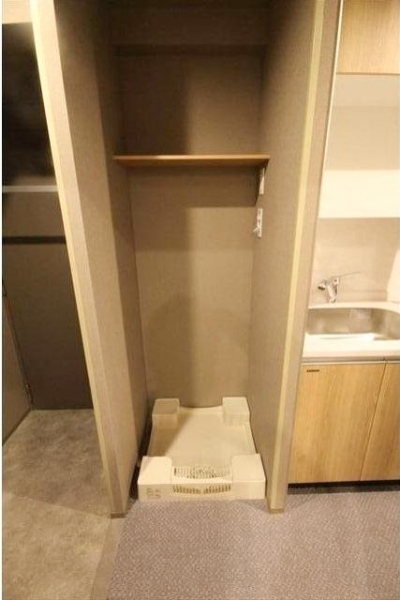 玄関を入ってすぐの左側には、洗濯機置き場があります。