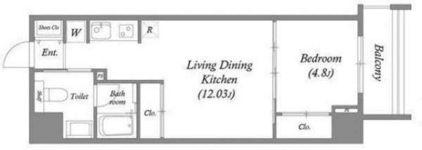 12.03帖のDKと4.8帖の洋室な間取りになっています。