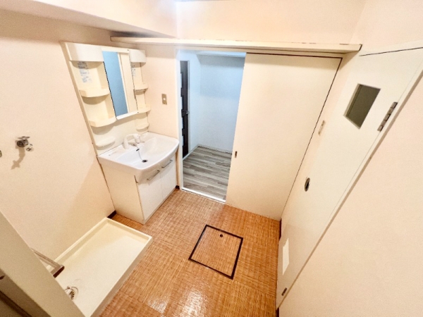 洗面台の隣には、洗濯機置き場になっています。