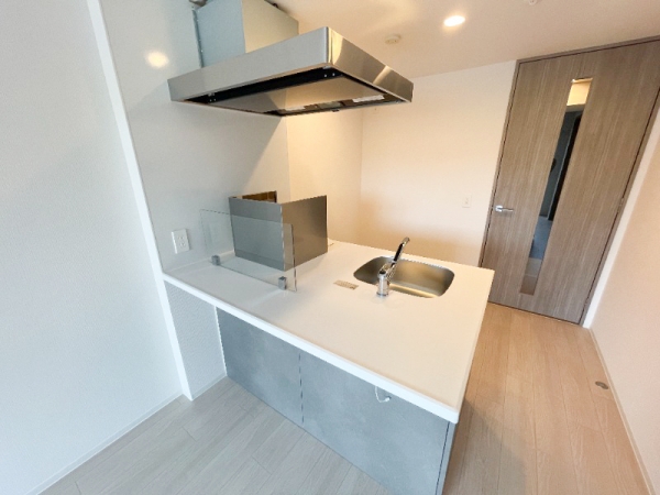 グレー調なキッチンが室内のアクセントになっています◎