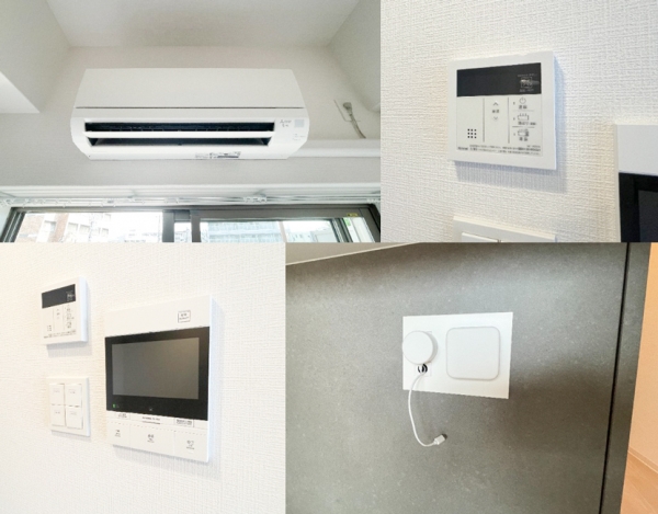 | CSアンテナ、BSアンテナ、クローゼット、シューズボックス、エアコン、室内洗濯機置き場、バルコニー、フローリング、インターネット対応(光ファイバー)、インターネット使用料無料、システムキッチン、給湯、温水洗浄便座、浴室乾燥機、洗面所独立、バス専用、バス・トイレ別、シャワー、ガスコンロ、コンロ(二口) | |