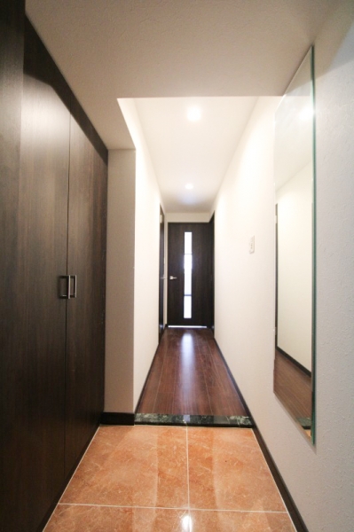 玄関はブラックを基調とした高級感のある内装です。