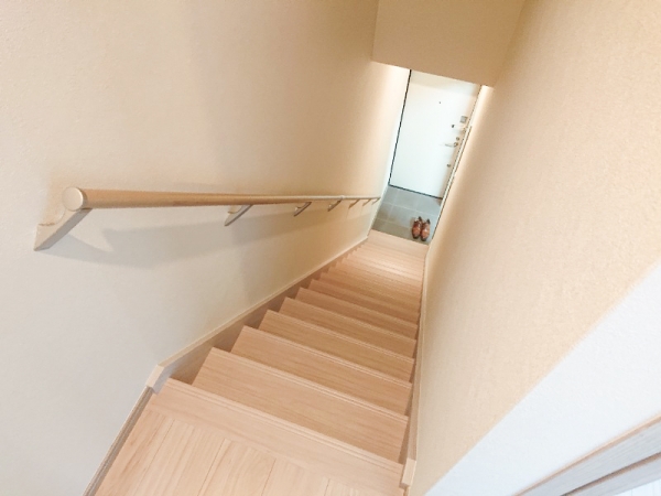 階段には手すりが付いています。