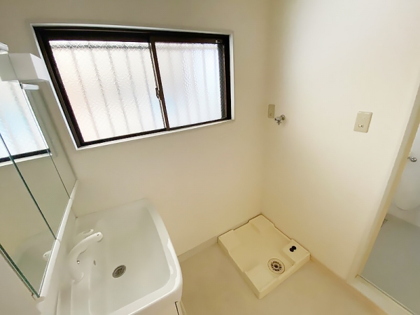 洗面所には窓付きで篭りがちな湿気も換気できます。
